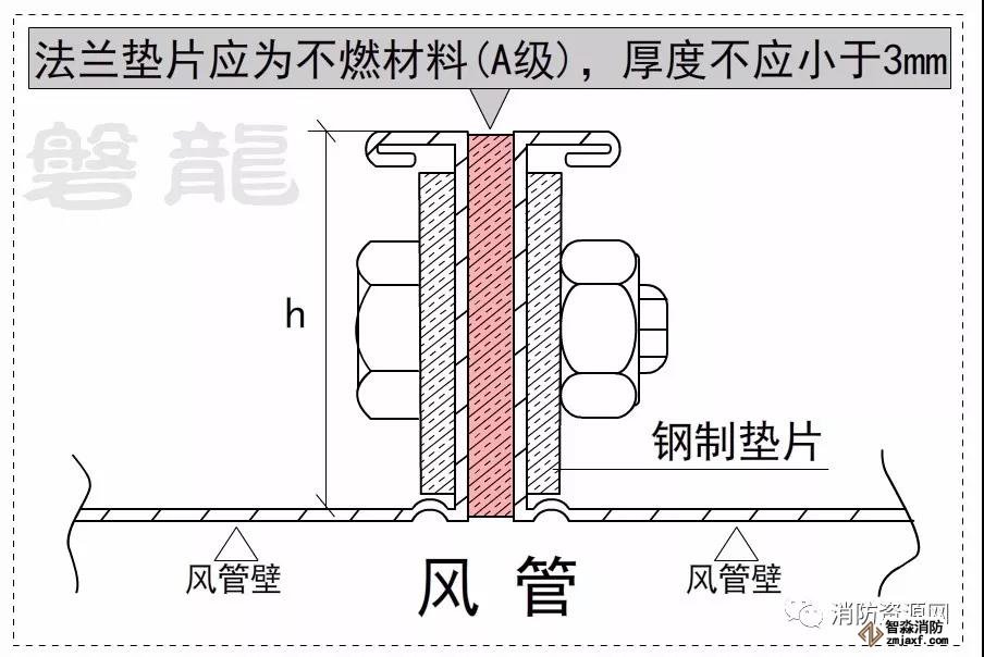 二、薄鋼板法蘭風(fēng)管應(yīng)采用螺栓連接,風(fēng)管接口的連接應(yīng)嚴(yán)密、牢固,法蘭墊片應(yīng)為不燃材料(A級(jí)),厚度不應(yīng)小于3mm,不應(yīng)凸入管內(nèi)和法蘭外。