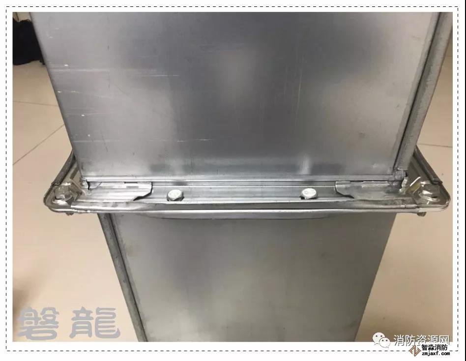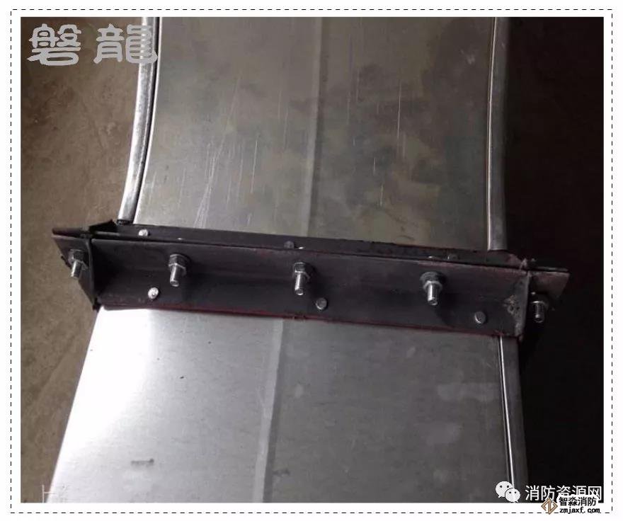 以下示例為薄鋼板法蘭連接風(fēng)管,這種彈簧夾的固定方式在防排煙風(fēng)管中不許可。