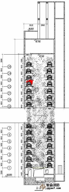 如果汽車發(fā)動機著火后濃煙和熱氣流會隨立體車庫的通風(fēng)系統(tǒng)從中空向上竄,顯然只會是車頭的探測器先報警,車尾的探測器要等一段時間才會報出火警,這段時差不容忽視。車尾著火時也只有一種探測器報警,綜合工程造價和性能,我們建議車頭布置一煙一溫,車尾布置一煙一溫,加速火災(zāi)探測系統(tǒng)的反應(yīng)速度。