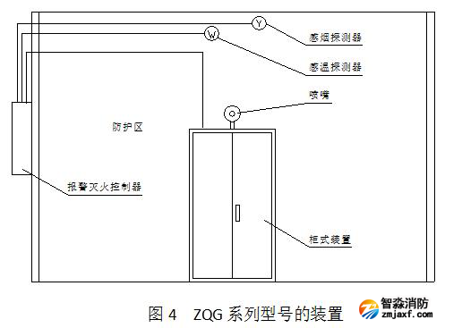 ● 裝兩個滅火劑容器的柜式裝置安裝時可參照圖5進(jìn)行。