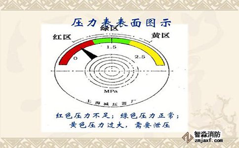 紅色區(qū)域:表示滅火器內(nèi)干粉壓力較小,有無法噴出的可能或已經(jīng)失效。