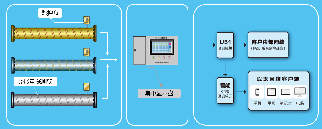 本系統(tǒng)具有24小時(shí)實(shí)時(shí)在線監(jiān)測(cè)管瓶自身的安全狀態(tài),至少提前10天預(yù)警,定位出險(xiǎn)點(diǎn)(問(wèn)題管瓶);記錄并遠(yuǎn)程傳輸,有效提示爆炸安全隱患,從而杜絕管瓶爆裂爆炸事故的發(fā)生。