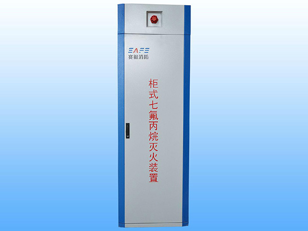 柜式七氟丙烷氣體滅火裝置,屬于七氟丙烷自動(dòng)滅火系統(tǒng)的一種,是一種無管網(wǎng)、輕便、可移動(dòng)式,自動(dòng)滅火的消防設(shè)備。具有安裝靈巧方便、外形美觀、滅火劑無管網(wǎng)損失、滅火效能高、速度快、無污染等特點(diǎn)。火災(zāi)發(fā)生時(shí),本裝置可直接向所在空間內(nèi)自動(dòng)噴灑滅火劑,方便快捷。本裝置可以與消防控制中心相連,也可以單獨(dú)配裝自動(dòng)滅火控制器,自成系統(tǒng),給用戶以靈活、方便的選擇。